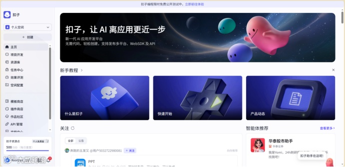 新账号注册,默认会展示扣子助手,可以在这里关闭