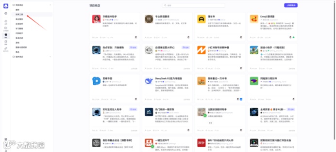 官方商店,包含智能体和应用两种类型