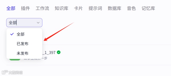 支持筛选自己创建的智能体/应用/工作流