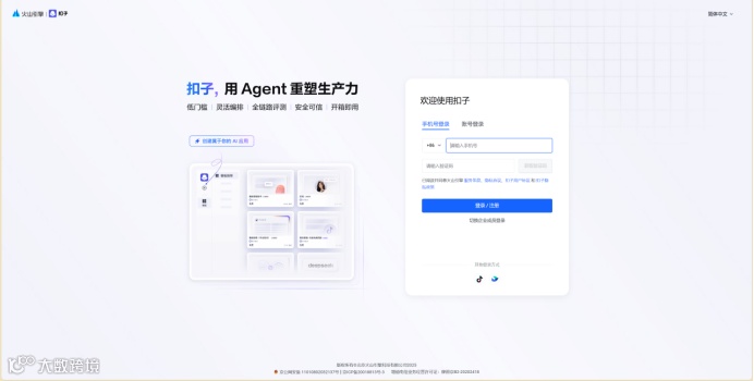 网址:https://www.coze.cn/studio 点击“登录扣子”,登录火山引擎账号