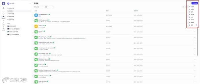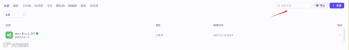 资源创建的主入口,,右上角有个“资源”按钮