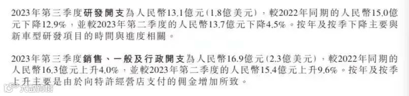 小鹏汽车对此部分开支上升做出的解释为,由于向特许经营店支付的佣金增加所致。换句话说,一边在研发费用上省下的,另一边可能又投入到了销售渠道中。