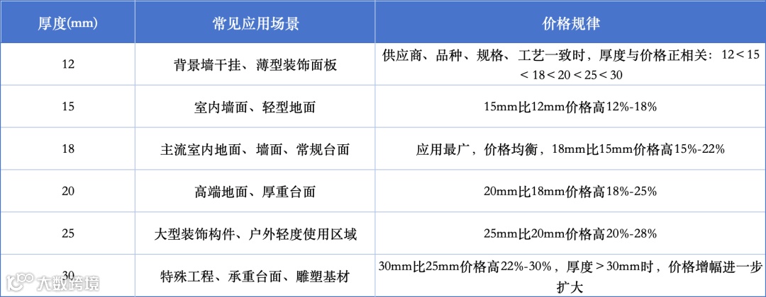 厚度与价格呈正相关关系。每增加 3–5mm 的厚度,价格通常上涨 15%–30%。主要原因是原料成本、加工难度以及运输过程中的损耗都会随厚度增加而提升。