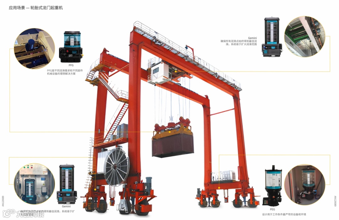 在全球港口向智慧化、绿色化转型的关键阶段,轨道式集装箱门式起重机(RMG)与轮胎式集装箱门式起重机(RTG)作为堆场作业的核心装备,其稳定高效运行直接影响港口整体运营效能。润滑系统作为场桥运维体系的核心支柱,是保障设备关键部件长效运转、降低故障风险的关键环节。
