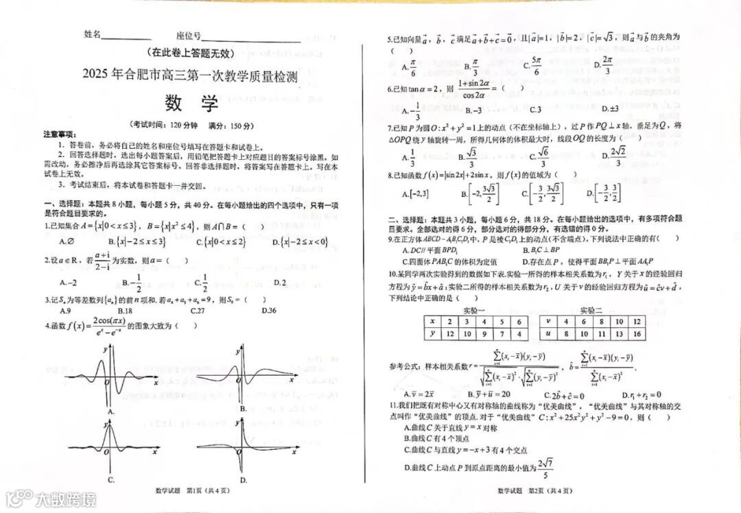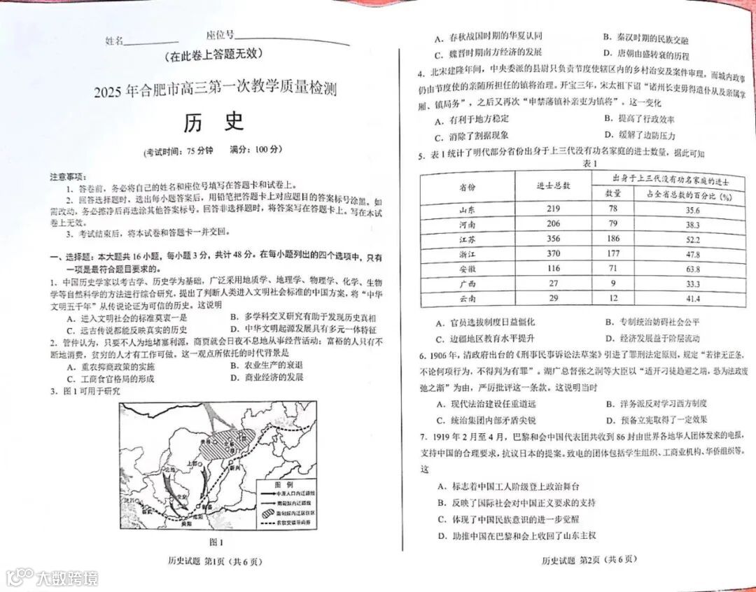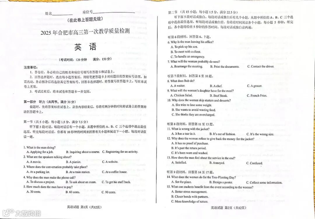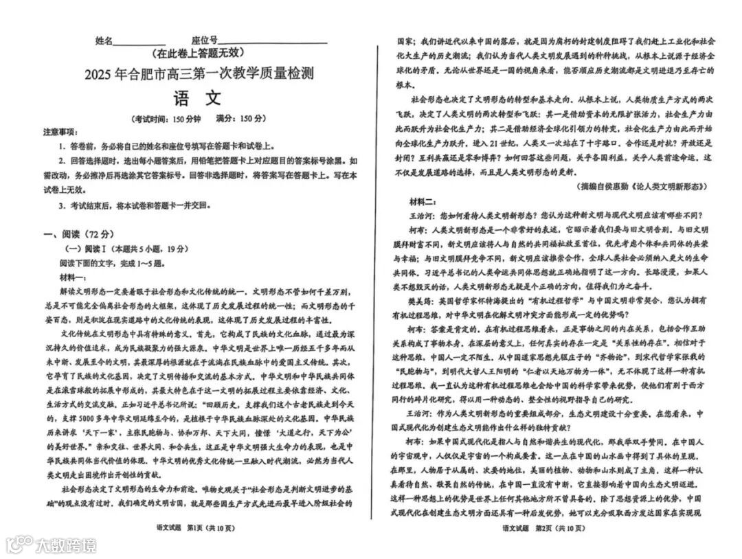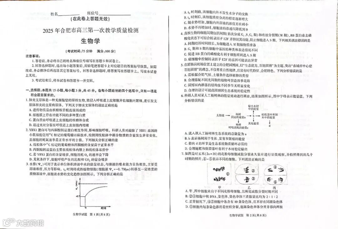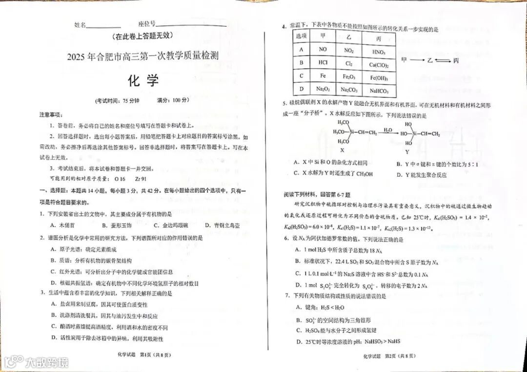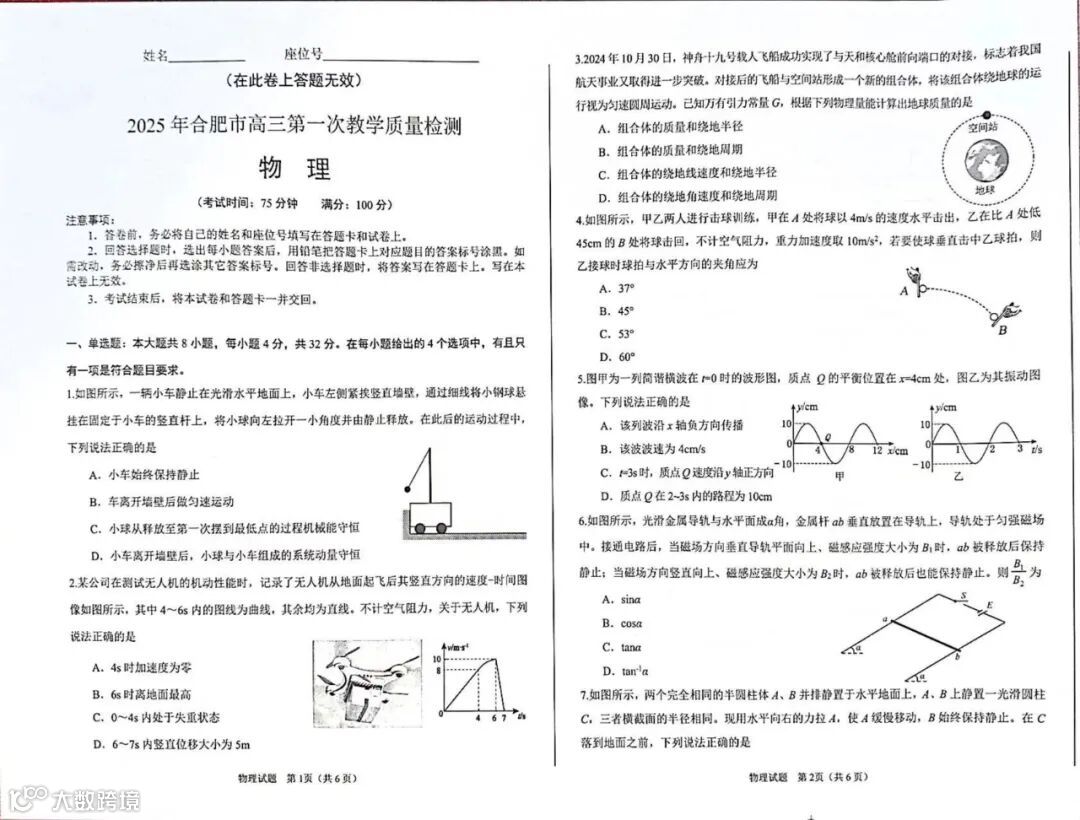 完整电子版25年合肥一模真题