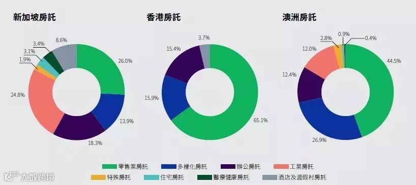 亚太REITs主要集中于新加坡、香港和澳洲三大市场。新加坡REITs资本市场成熟,资产组合多元,广泛布局亚太、欧美;香港REITs以零售和办公为主,积极拓展内地物业并购;澳洲REITs则以本土工业、办公及零售资产为核心,市场规模稳定。