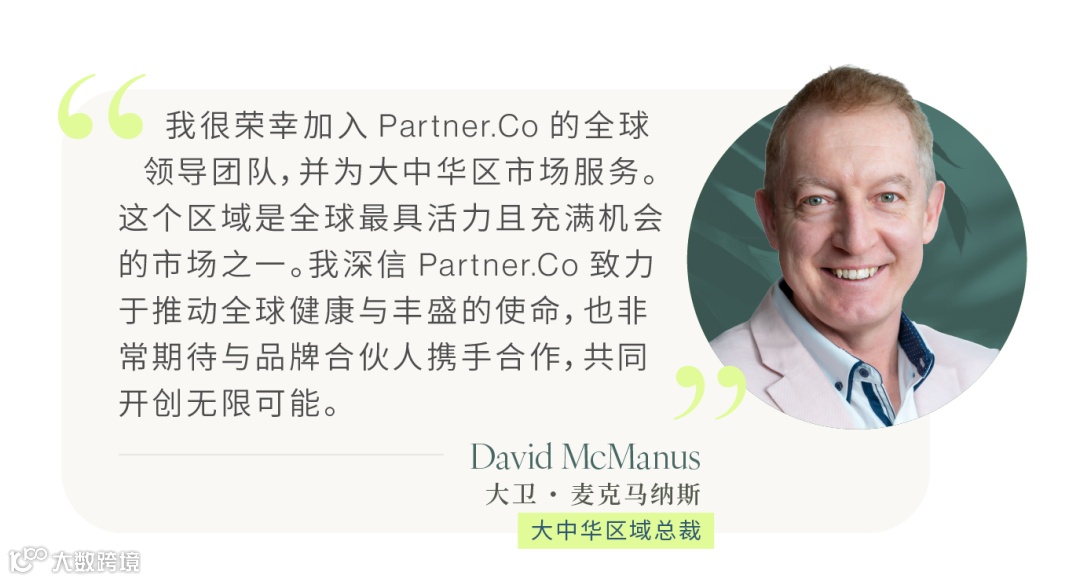 Partner.Co以「赋能这个世界,让更多的人拥有健康与丰盛」为使命,推动全球健康与繁荣发展,欣然宣布任命大卫·麦克马纳斯 (David McManus) 为大中华区域总裁。