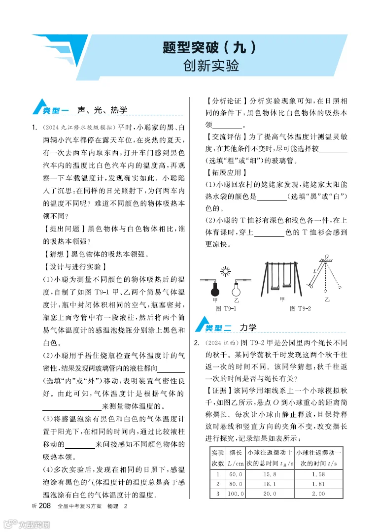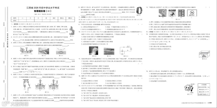 覆盖江西初中物理人教、沪粤、教科三个版本新教材的跨学科实践内容,精选符合江西中考命题方向的跨学科实践题型,熟练考情考法,精准突破。