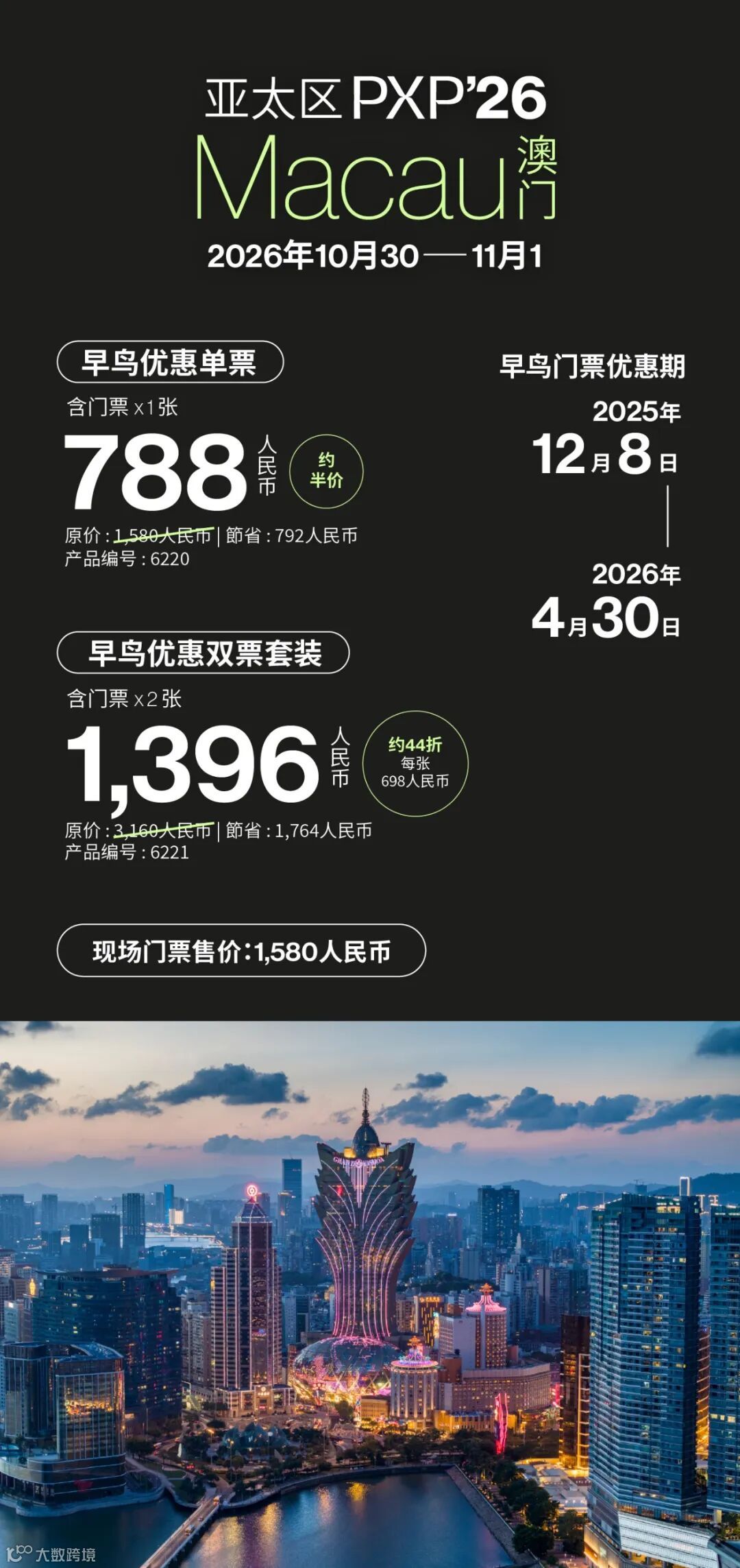 3. 此门票仅包含亚太区PXP’26 Macau澳门入场费,不包含交通、食宿及其他费用。