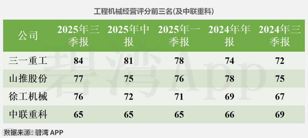 中联重科在2025年三季报经营评分排名为第2292名,在工程机械行业中排名为6名。