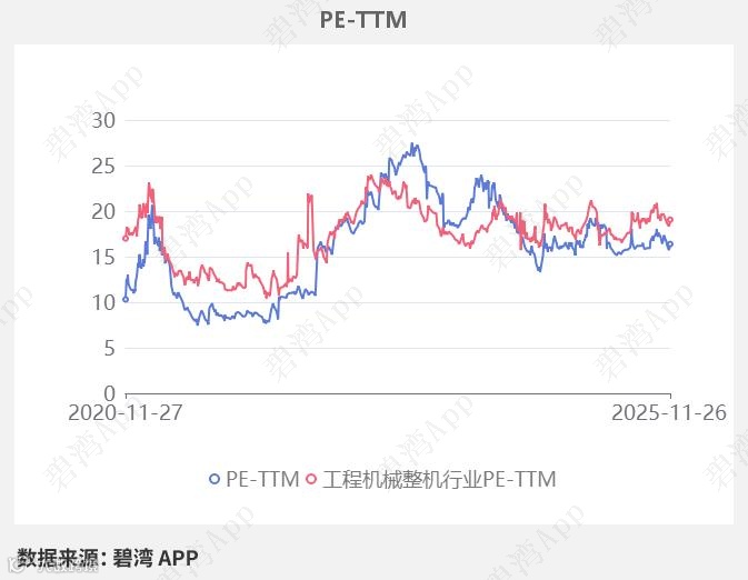 在2025年11月26日,中联重科的PE-TTM是16.39,而工程机械整机行业的PE-TTM是19.06,中联重科低于工程机械整机行业的PE-TTM。