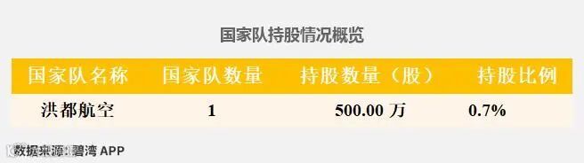 仅有洪都航空被国家队持有,持股数量为500万股,持股比例为0.7%。这表明国家队对该公司的认可度较高。其他公司暂无国家队持股记录。