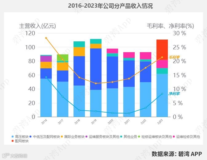 2023年公司的主营业务为输配电及控制设备制造业,主要产品包括高压板块和配网板块两项,其中高压板块占比55.57%,配网板块占比26.27%。
