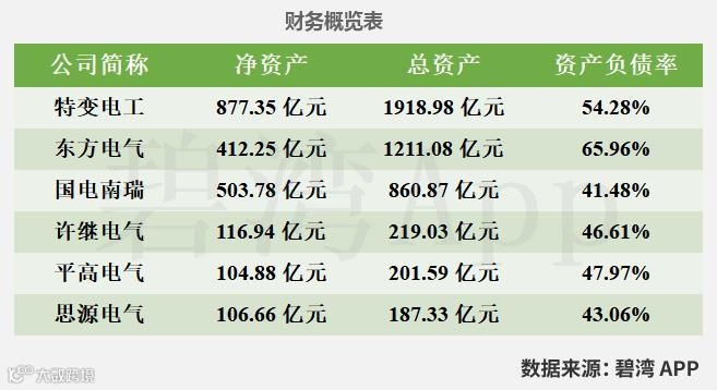 特变电工是2023年净资产最多的公司,其净资产高达877.35 亿元,国电南瑞次之,平高电气最低,只有104.88 亿元。特变电工是2023年总资产最高的公司,其总资产为1918.98 亿元,东方电气略逊一筹,其总资产为1211.08 亿元,东方电气资产负债率最高,其资产负债率为65.96%,国电南瑞资产负债率最低,其资产负债率为41.48%。
