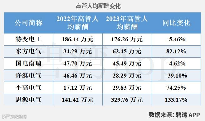 对比2022年,思源电气、平高电气、东方电气高管平均薪酬有所增长。许继电气、特变电工、国电南瑞高管平均薪酬有一定程度的下降。