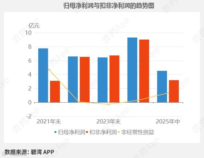 2021-2024年半年度公司扣非净利润持续增长,2025年半年度扣非净利润3.18亿元,较上期有所下降。