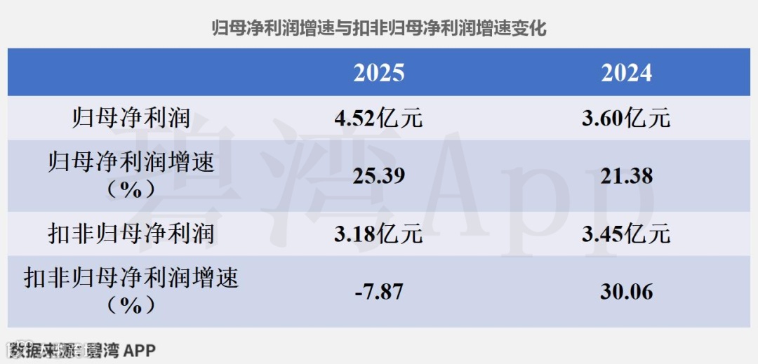 本期归母净利润小幅增长了25.39%,而扣非归母净利润出现了负增长,主要是因为本期非经常性损益收益大幅增长。