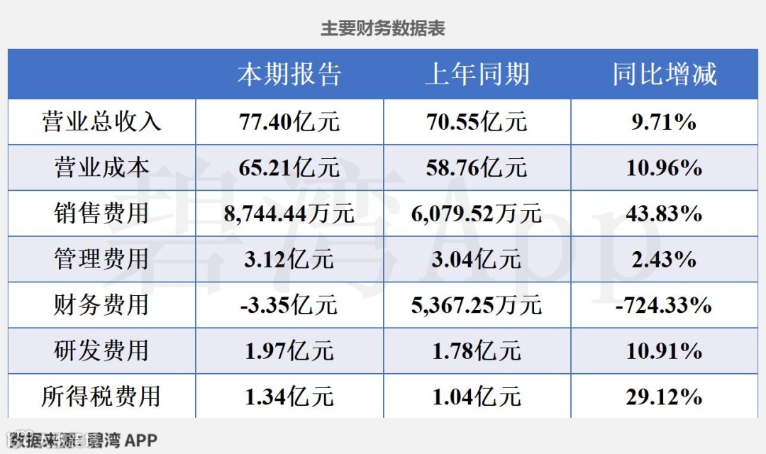 2025年半年度公司营收77.40亿元,同比小幅增长9.71%,虽然营收在增长,但是财务费用却在下降。