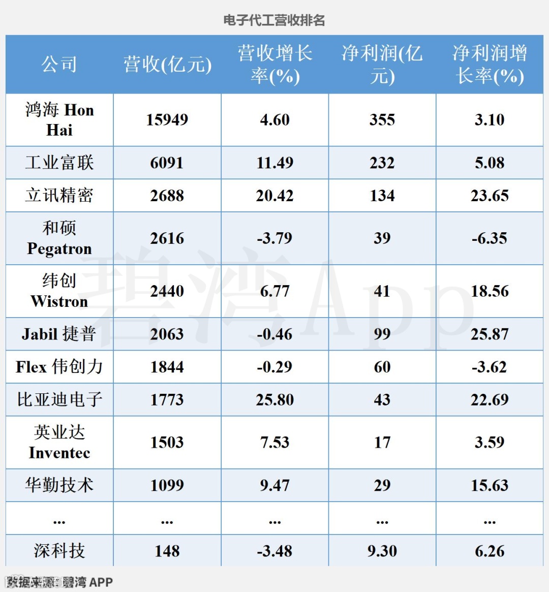 截止到2025年9月24日,深科技近十二个月的滚动营收为148亿元,在电子代工行业中,深科技的全国排名为8名,全球排名为21名。