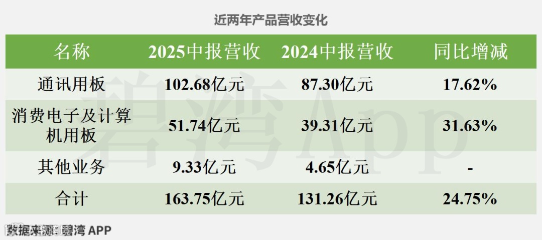 2025年半年度,鹏鼎控股营业总收入为163.75亿元,去年同期为131.26亿元,同比增长24.75%,净利润为12.26亿元,去年同期为7.84亿元,同比大幅增长56.37%。