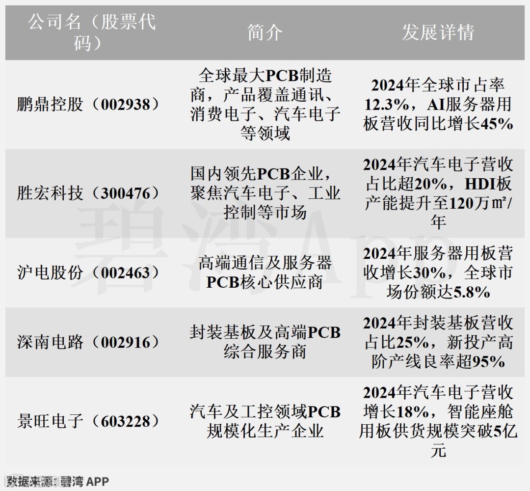 鹏鼎控股连续八年(2017-2024)位列全球PCB企业营收第一,市场占有率超10%,核心客户涵盖苹果、华为等头部科技企业,在高阶FPC、HDI及SLP等领域技术领先,稳居全球龙头地位。