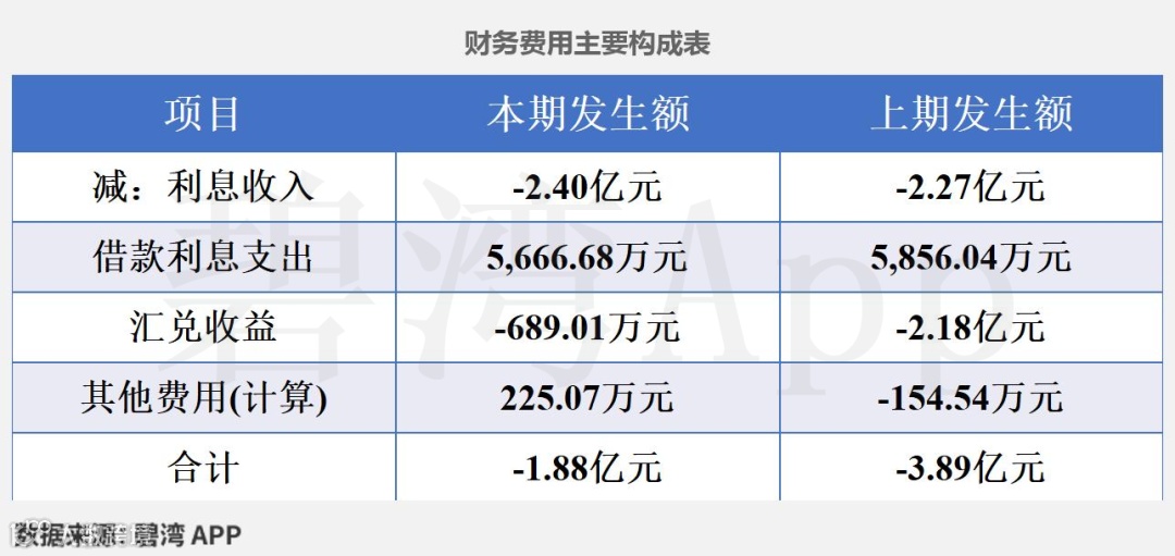 本期财务费用为-1.88亿元,表示有财务收益,同时这种收益较上期大幅下降了51.6%。值得一提的是,本期财务收益占净利润的比重达到15.34%。归因于汇兑收益本期为689.01万元,去年同期为2.18亿元,同比大幅下降了96.84%。