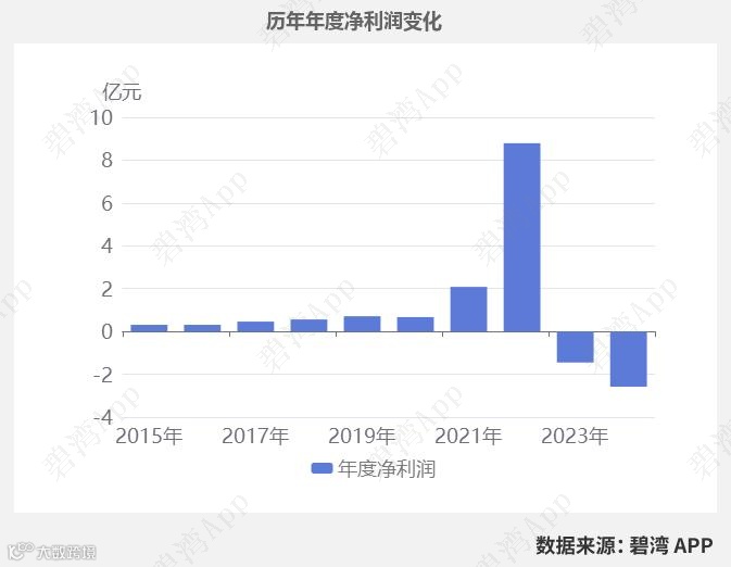 净利润从2015年年度到2022年年度呈现上升趋势,从3,064.66万元增长到8.79亿元,而2022年年度到2024年年度呈现下降状态,从8.79亿元下降到-2.58亿元。