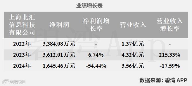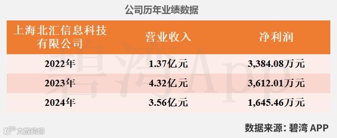 上海北汇信息科技有限公司的历史业绩数据如下表所示: