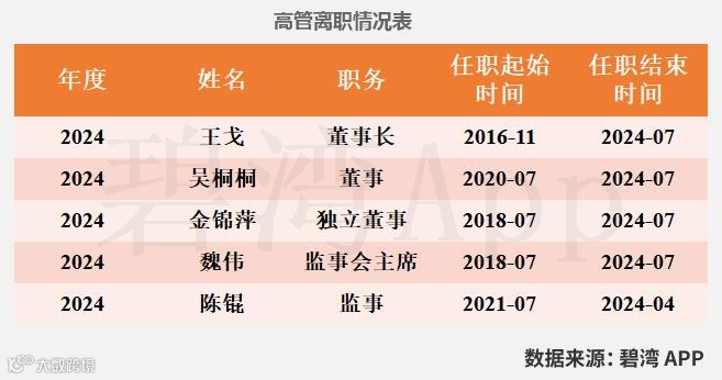 5年内公司重要高管共计有12人离职。2024年董事长王戈离职。