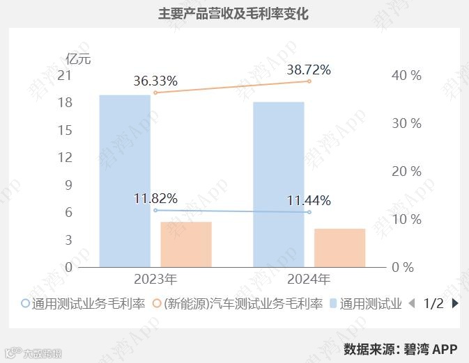 2024年公司毛利率从去年同期的20.17%,同比小幅增长到了今年的21.11%,主要是因为(新能源)汽车测试业务本期毛利率38.72%,去年同期为36.33%,同比小幅增长6.58%。
