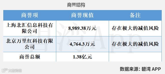 风险方面,上海北汇信息科技有限公司存在极大的减值风险、北京万里红科技有限公司存在极大的减值风险。