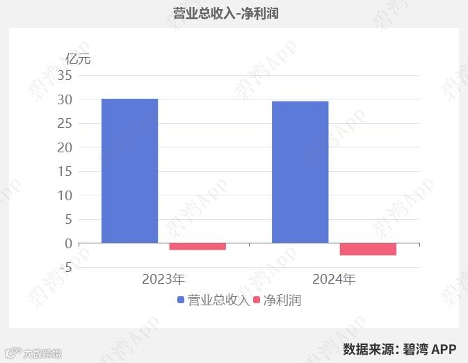 2024年年度,东方中科营业总收入为29.56亿元,去年同期为30.07亿元,同比基本持平,净利润为-2.58亿元,去年同期为-1.45亿元,较去年同期亏损增大。