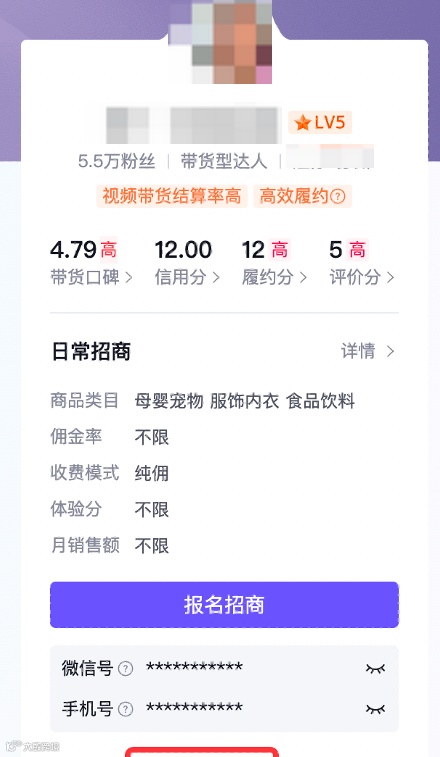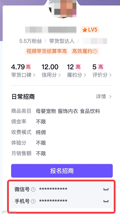 查看联系方式路径:达人广场 → 达人信息主页 → 微信号/手机号