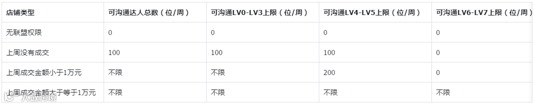 商家主动与达人沟通时,消息发送权限将根据联盟权限及成交额分级设定[1]: