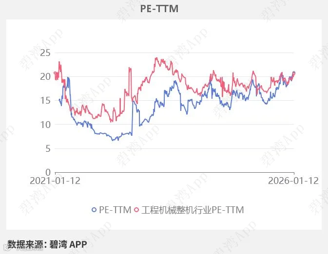 在2026年01月12日,徐工机械的PE-TTM是20.80,而工程机械整机行业的PE-TTM是20.60,徐工机械高于工程机械整机行业的PE-TTM。