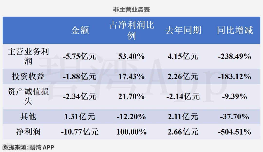 3、非主营业务利润由盈转亏