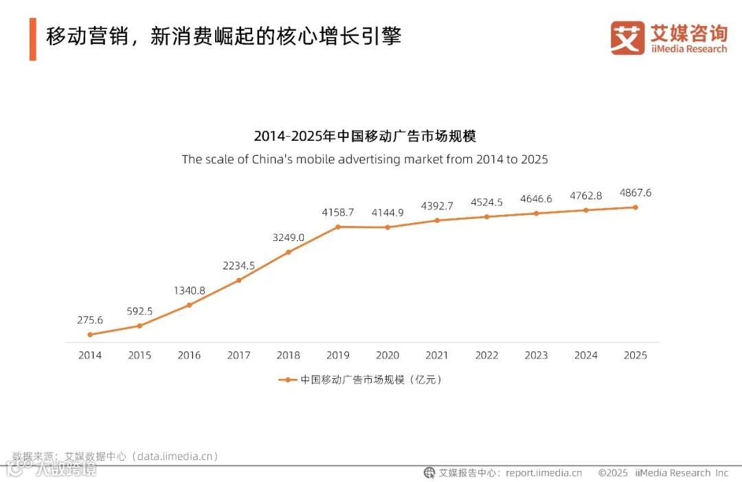 市场规模:2025年中国移动广告市场规模达4867.6亿元