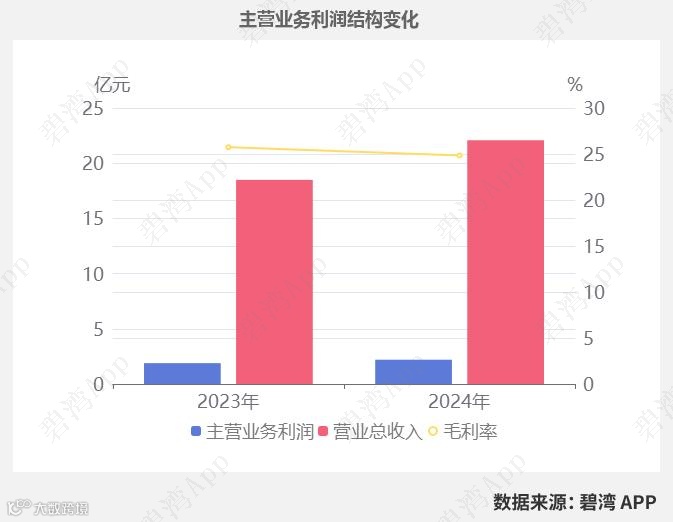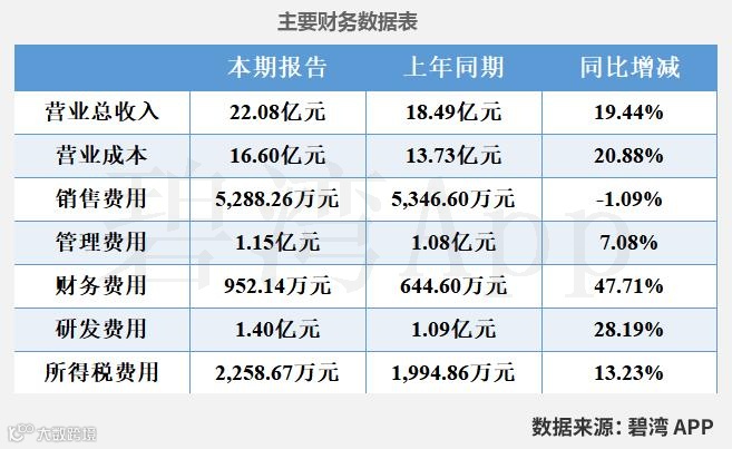 虽然毛利率本期为24.84%,同比小幅下降了0.90%,不过营业总收入本期为22.08亿元,同比增长19.44%,推动主营业务利润同比增长。