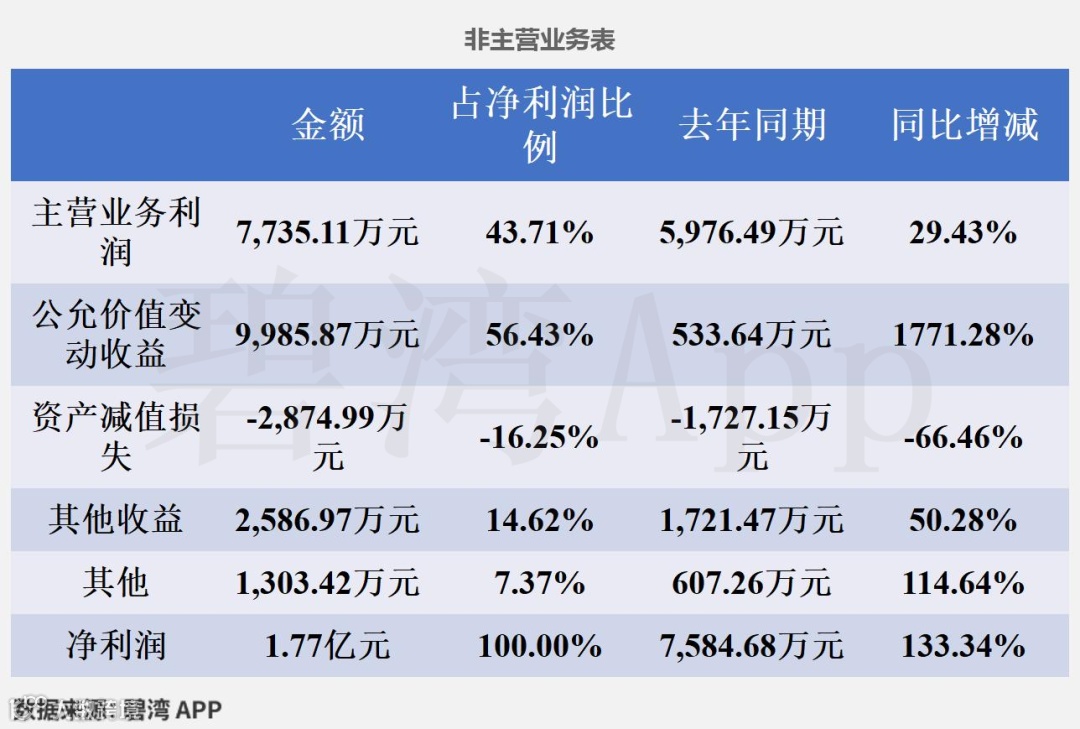 公允价值变动收益同比大幅增长推动净利润同比大幅增长