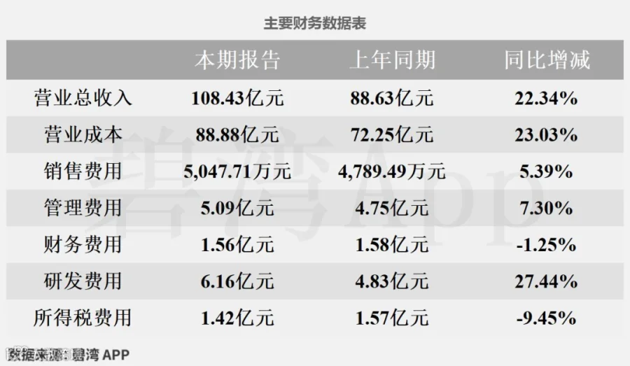 主营业务利润同比大幅增长主要是由于营业总收入本期为108.43亿元,同比增长22.34%。