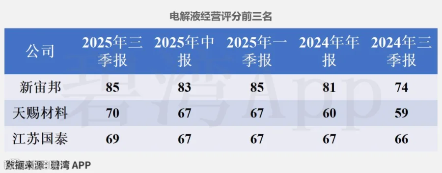 天赐材料在2025年三季报经营评分排名为第2166名,在电解液行业中排名为2名。