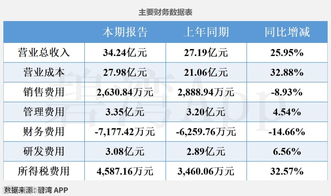 虽然营业总收入本期为34.24亿元,同比增长25.95%,不过毛利率本期为18.28%,同比下降了4.27%,导致主营业务利润同比大幅下降。