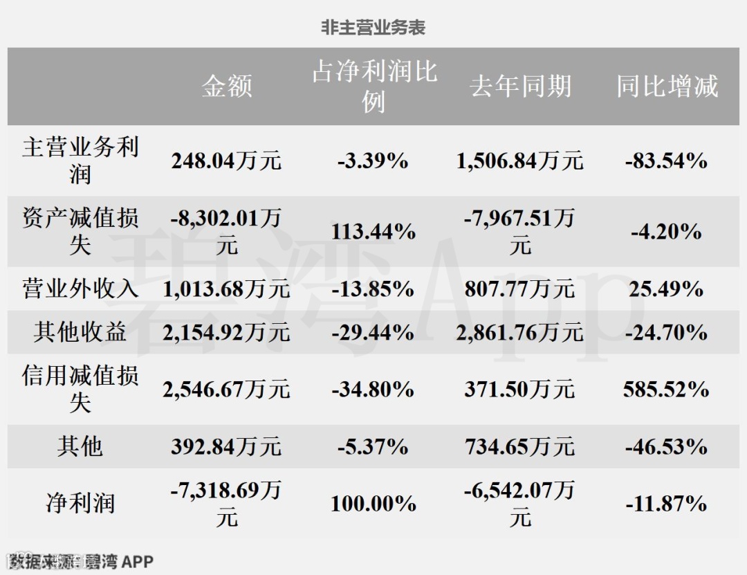 主营业务利润同比大幅下降导致净利润同比亏损增大