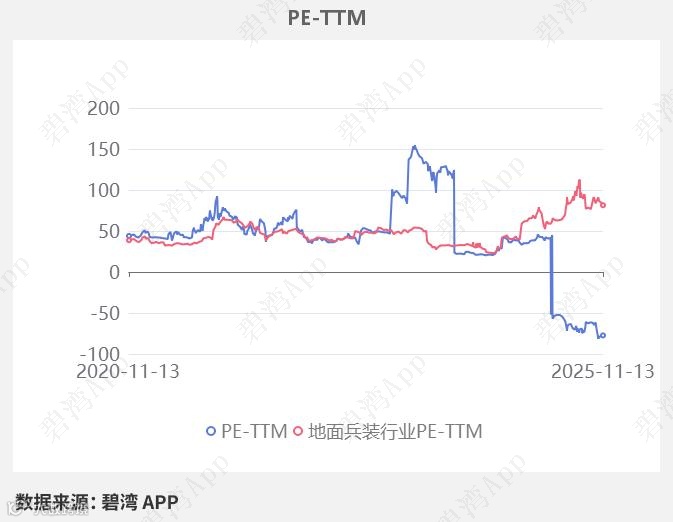 可以看到,近期中兵红箭PE-TTM为负,参考价值不大。