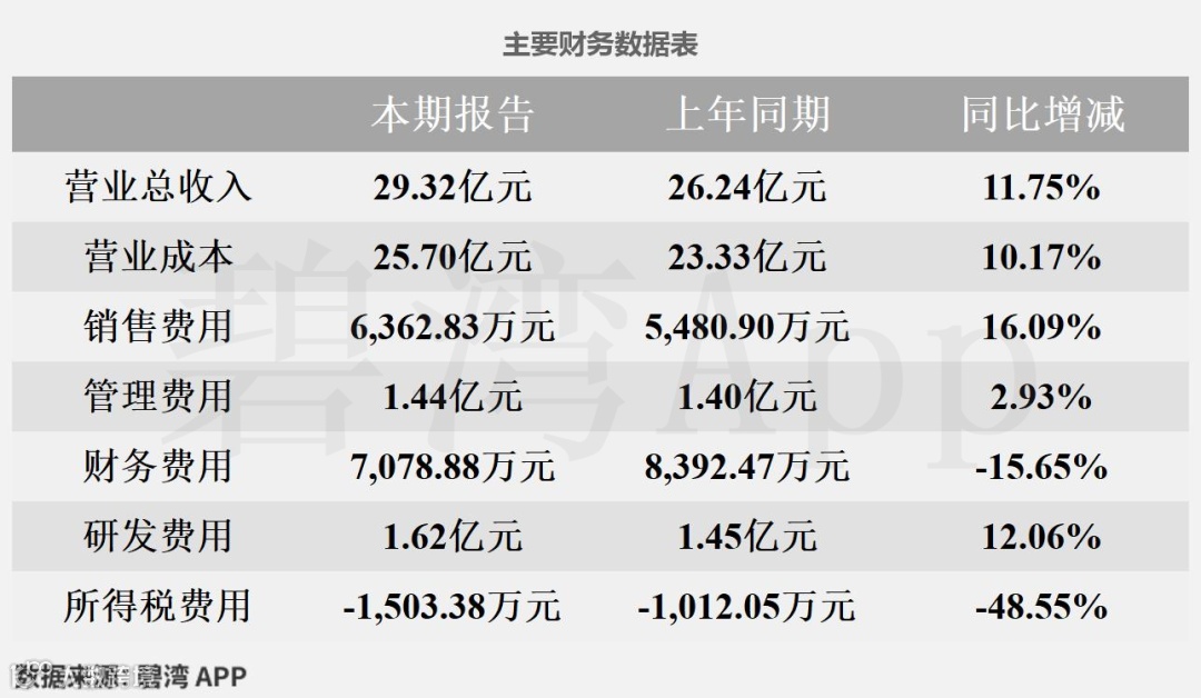 2024年公司营收29.32亿元,同比小幅增长11.75%,虽然营收在增长,但是财务费用却在下降。
