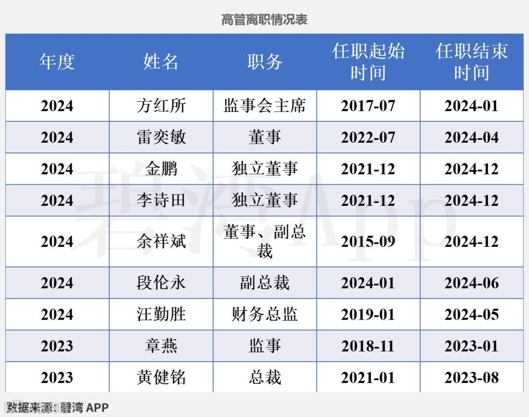 5年内公司重要高管共计有15人离职。财务总监方面,2024年汪勤胜离职。总裁方面,2023年黄健铭离职。