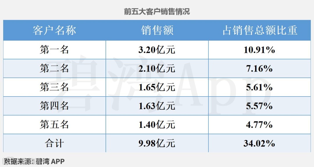 目前公司下游客户集中度较高,前五大客户占总营收的34.02%,相较于2023年的29.19%,仍在小幅增长,其中第一大客户占比10.91%。