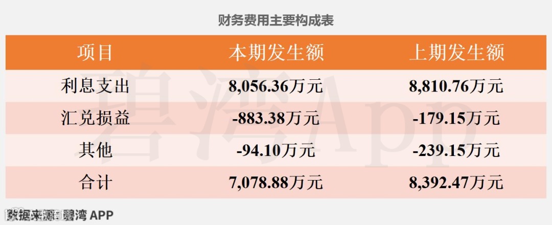 (1)利息支出本期为8,056.36万元,去年同期为8,810.76万元,同比小幅下降了8.56%。