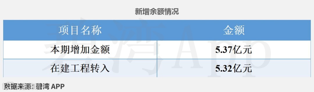 其中,固定资产的增加主要是因为在建工程转入所导致的,本期企业固定资产新增5.37亿元,主要为在建工程转入的5.32亿元,占比99.17%。
