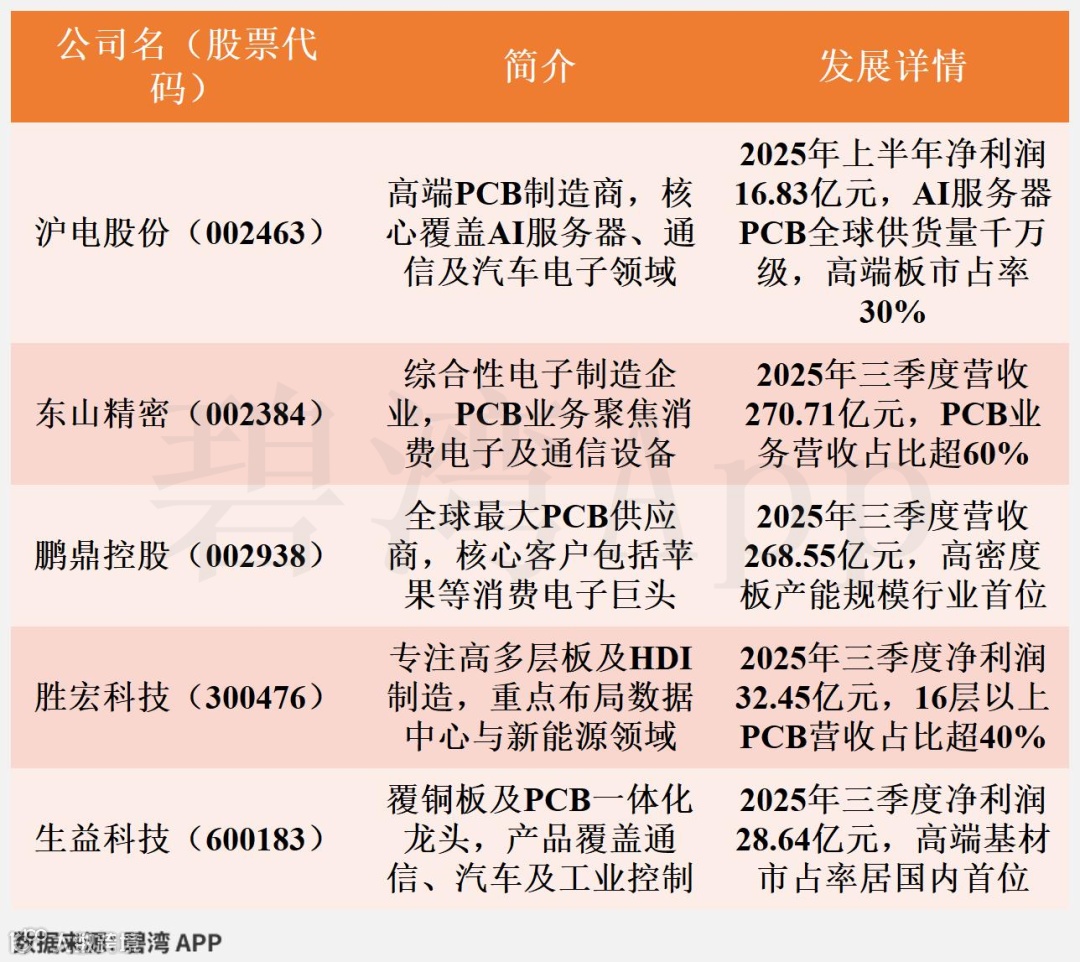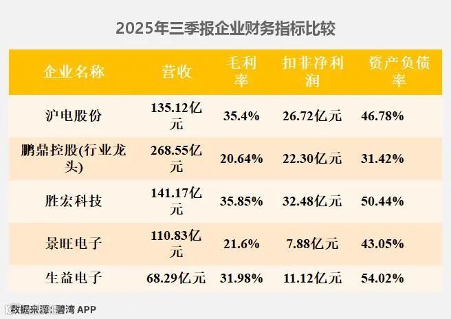 沪电股份聚焦高端PCB市场,2025年三季度营收行业排名第六,净利润位列第三。其在22层以上高端PCB全球市占率超30%,AI服务器用高速板领域技术领先,上半年毛利率35.14%,净利润同比增幅47.50%,稳居国内第一梯队。